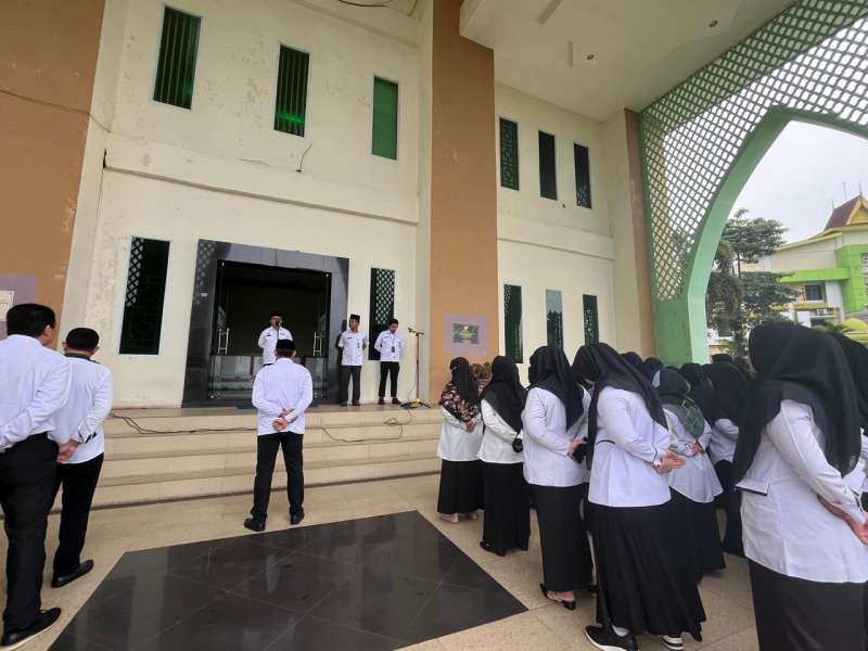 Bintan, Kampus Bersendikan Wahyu Berteraskan Ilmu — Meski diguyur gerimis, unsur pimpinan, dosen, dan tenaga kependidikan Sekolah Tinggi Agama Islam Negeri (STAIN) Sultan Abdurrahman Kepulauan Riau tetap antusias mengikuti Apel Senin Pagi yang berlangsung pada Senin, 24 November 2025 di beranda Gedung Rektorat STAIN SAR Kepri.